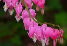 荷包牡丹 Fukuhara),是罂粟科荷包牡丹属的多年生草本植物,株高30-60厘米,具肉质根状茎;茎直立呈圆柱形;叶二回三出全裂,状似牡丹叶;总状花序顶生,基部为心形,花瓣紫红色至粉红色,稀白色,…全部>>