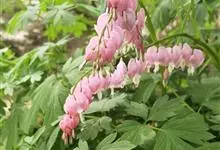 荷包牡丹 Fukuhara),是罂粟科荷包牡丹属的多年生草本植物,株高30-60厘米,具肉质根状茎;茎直立呈圆柱形;叶二回三出全裂,状似牡丹叶;总状花序顶生,基部为心形,花瓣紫红色至粉红色,稀白色,…全部>>