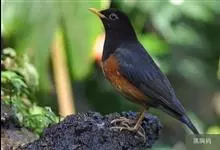 黑胸鸫属中型鸟类,体长20-30厘米。雄鸟整个头、颈、胸黑色,其余上体暗灰色,下体橙棕色,极为醒目。嘴、脚蜡黄色。雌鸟上体橄榄褐色,颏、喉白色,上胸橄榄褐色具黑色斑点,其余与雄鸟相似。…全部>>