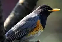 黑胸鸫属中型鸟类,体长20-30厘米。雄鸟整个头、颈、胸黑色,其余上体暗灰色,下体橙棕色,极为醒目。嘴、脚蜡黄色。雌鸟上体橄榄褐色,颏、喉白色,上胸橄榄褐色具黑色斑点,其余与雄鸟相似。…全部>>