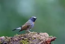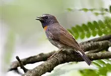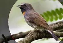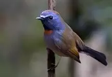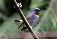 棕胸蓝姬鹟:属小型鸣禽,体长10-13厘米,体重6-10克,是一种体型很小的灰蓝及棕色鹟,雌雄羽色不同,雄鸟羽色艳丽,雌鸟羽色暗淡。雄鸟上体深蓝色,胸橙黄色,下腹灰白色。亚成鸟具褐色斑驳。…全部>>