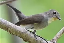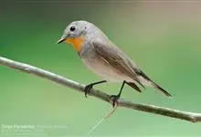橙胸姬鹟:体长12-16厘米,是一种体型略小的林栖型鹟。尾黑而基部白,上体橄榄褐色,额具一白色横带,两端向上延伸至眼上形成眉斑。翼橄榄色,下体灰。成年雄鸟额上有狭窄白色并具小的深红色项纹,常不明显。…全部>>