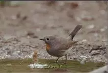 红喉姬鹟小型鸟类,体长11~13厘米。雄鸟上体灰黄褐色,眼先、眼周白色,尾上覆羽和中央尾羽黑褐色,外侧尾羽褐色,基部白色。颏、喉繁殖期间橙红色,胸淡灰色,其余下体白色,非繁殖期颏、喉变为白色。…全部>>