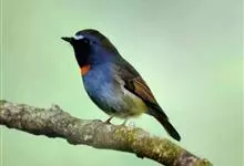 棕胸蓝姬鹟:属小型鸣禽,体长10-13厘米,体重6-10克,是一种体型很小的灰蓝及棕色鹟,雌雄羽色不同,雄鸟羽色艳丽,雌鸟羽色暗淡。雄鸟上体深蓝色,胸橙黄色,下腹灰白色。亚成鸟具褐色斑驳。…全部>>