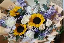 向日葵:是桔梗目、菊科、向日葵属的植物。因花序随太阳转动而得名。是一年生高大草本植物。茎粗壮,高1-3米,不分枝或有时上部分枝,被白色粗硬毛。叶互生,卵状心形或卵形,顶端急尖或渐尖,基生3出脉,…全部>>