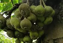 聚果榕是桑科榕属植物,乔木,高达25-30米,胸径60-90厘米,树皮灰褐色。叶薄革质,椭圆状倒卵形至椭圆形或长椭圆形,长10-14厘米,宽3.5-4.5厘米。榕果聚生于老茎瘤状短枝上,…全部>>
