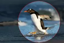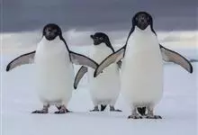 阿德利企鹅在企鹅家族中属中、小型种类,体长72-76厘米,和许多种类企鹅一样,雌鸟和雄鸟同形同色,从外形难以辨认。眼圈为白色,头部呈蓝绿色,嘴为黑色,嘴角有细长羽毛。羽毛由黑、白两色组成,…全部>>