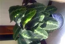 绒叶肖竹芋 Lindl.)是竹芋科,肖竹芋属多年生中等大草本植物,株高可达1米。叶片长圆状披针形,不等侧,叶面深绿,有黄绿色的条纹,天鹅绒般,叶背幼时浅灰绿色,老时淡紫红色,头状花序,花冠紫堇色或白色,…全部>>