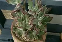 锦晃星是景天科、石莲花属多肉植物。多年生小灌木状多浆植物,灰绿色卵状倒披针形肥厚肉质叶轮状互生,全缘,椭圆尖头,长3-4厘米,宽2-2.5厘米,厚约1厘米,玲凉季节阳光下,叶端及上缘呈红色。…全部>>