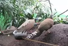 大眼斑雉:体长160-200厘米,雄鸟尾长105-143厘米;雌鸟体长72-76厘米,雌鸟尾长30-36厘米;雄鸟体重2040-2725克,雌鸟体重1590-1700克。体羽总体为褐色,头及颈均为蓝…全部>>