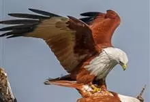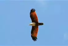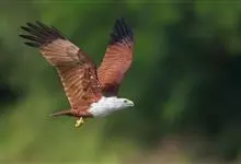 栗鸢:又叫红老鹰,为中型猛禽。体长36-51厘米。虹膜为褐色或红褐色,头、颈、胸和上背白色,其余体羽和翅膀均为栗色。主要栖息于江河、湖泊、水塘、沼泽、沿海海岸和邻近的城镇与村庄。…全部>>
