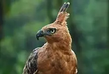 鹰雕,是隼形目鹰科鹰雕属大型猛禽,俗称熊鹰、赫氏角鹰。其上体暗褐色,头后冠羽常竖立起,腰和尾上覆羽有淡色横斑,尾灰色带数道黑褐色横纹,下体淡黄白色带淡褐色横斑,喉部具黑褐色中央纹,胸部有黑褐色纵纹,…全部>>
