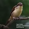 虎纹伯劳:全长165毫米左右。雄性成鸟:额基、眼先和宽阔的贯眼纹黑色;前额、头顶至后颈蓝灰色;上体余部包括肩羽及翅上覆羽栗红褐色,杂以黑色波状横斑;飞羽暗褐色,外翻具棕褐色羽缘;尾羽棕褐色,…全部>>