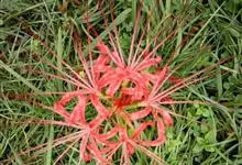 石蒜[学名:Lycoris radiata Herb.],是石蒜科石蒜属的多年生草本植物,别名彼岸花、红花石蒜、死人花、蟑螂花、龙爪花等。石蒜的叶狭带状,中间有粉绿色带,秋季出叶。伞形花序,花鲜红色。…全部>>