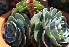 蓝石莲是景天科、拟石莲花属的多肉植物。茎部粗壮,成熟植株茎部木质化。叶片莲座型密集排列,株径不会很大,叶片相对较薄,常年绿色,表面布有白色粉末,中部凹陷,呈倒水滴状。叶尖较尖,叶缘光滑无褶皱,…全部>>