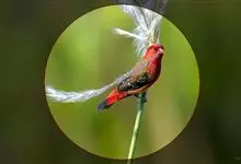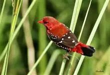 红梅花雀小型鸟类,体长9-10厘米。雄鸟通体朱红色,背、肩、胸等满布白色小斑点,两翅和尾黑褐色均具白色端斑,嘴红色,脚蜡黄色。雌鸟上体淡褐色或赭褐色,翅上中覆羽、大覆羽和内侧飞羽末端具白色斑点,…全部>>