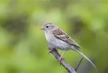 山麻雀:小型鸟类,体长13-15厘米。雄鸟上体栗红色,背中央具黑色纵纹,头棕色或淡灰白色,颏、喉黑色,其余下体灰白色或灰白色沾黄。雌鸟上体褐色具宽阔的皮黄白色眉纹,颏、喉无黑色。…全部>>