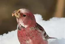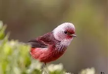 藏朱雀:全长约17-18厘米。雄鸟头部深红色具光辉,喉部暗红色具白色点斑;背部灰白色,各羽具玫瑰红色羽端,形成许多斑纹;腰部淡玫瑰红色;翅暗褐色,沾灰白,羽端沾玫瑰红或灰白色;尾暗棕色,端缘玫瑰红色…全部>>