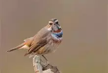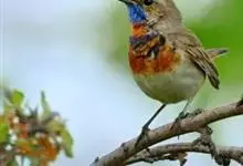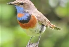蓝点颏亦称“蓝喉歌鸲”,通称蓝靛颏儿。身体大小和麻雀相似,体长12-13厘米,体重17-18克。头部、上体主要为土褐色。眉纹白色。尾羽黑褐色,基部栗红色。颏部、喉部辉蓝色,下面有黑色横纹。下体白色。…全部>>