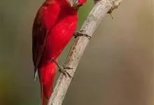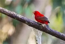 普通朱雀是雀形目雀科朱雀属鸟类,又名红朱雀、马料、青麻料。雄鸟上体红色,下体淡红色;头部、喉部、胸部及腰部亮红色;背部褐色染红色;两翼及尾黑褐色,羽缘染红色。雌鸟上体橄榄褐色,下体近白色,…全部>>