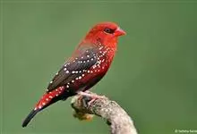 红梅花雀小型鸟类,体长9-10厘米。雄鸟通体朱红色,背、肩、胸等满布白色小斑点,两翅和尾黑褐色均具白色端斑,嘴红色,脚蜡黄色。雌鸟上体淡褐色或赭褐色,翅上中覆羽、大覆羽和内侧飞羽末端具白色斑点,…全部>>
