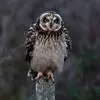 短耳鸮又名小耳木兔、田猫王、夜猫子等,是鸮形目鸱鸮科耳鸮属中小型猛禽动物。成鸟面盘显著,眼周黑色;眼先及内侧眉纹灰白色,面盘余部棕黄色杂以黑色细羽干纹;耳簇羽短小而几乎不外露,…全部>>