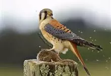 红隼:是隼科、隼属的小型猛禽之一。体重173-335克,体长305-360毫米。翅狭长而尖,尾亦较长,外形和共同爪隼非常相似。雄鸟头蓝灰色,背和翅上覆羽砖红色,具三角形黑斑;腰、尾上覆羽和尾羽蓝灰色,…全部>>
