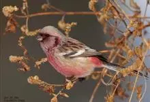 藏朱雀:全长约17-18厘米。雄鸟头部深红色具光辉,喉部暗红色具白色点斑;背部灰白色,各羽具玫瑰红色羽端,形成许多斑纹;腰部淡玫瑰红色;翅暗褐色,沾灰白,羽端沾玫瑰红或灰白色;尾暗棕色,端缘玫瑰红色…全部>>