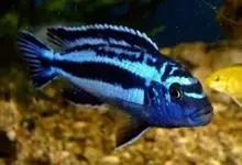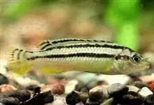 非洲凤凰是最早从马拉维湖出口的慈鲷之一。体长约15厘米,捕食性鱼类。幼鱼为鲜黄色,身体上半部分两条黑色条纹从吻延伸到尾鳍。 背鳍上也有一条黑色条纹。成年以后的雌鱼依然保持着这种体色,…全部>>