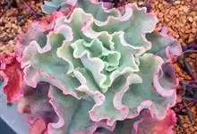 女王花笠,又名扇贝石莲花、女王花舞笠,是景天科拟石莲花属的多肉植物。由美国加利福尼亚州的育种师Dick Wright于1964年培育。特征是呈大波浪状褶皱的红色叶缘和气质高贵的粉紫色调。…全部>>