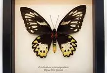 金裳凤蝶是凤蝶科、裳凤蝶属的动物。金裳凤蝶身体呈黑色,头、颈和胸侧有红毛,腹部有黑黄两色相间条纹,雄蝶前翅黑色,具黑天鹅绒光泽,各脉两侧灰白色,后翅金黄色,各室外缘有等腰三角形黑斑1枚,斑内侧有晕,…全部>>
