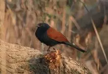 褐翅鸦鹃,是鹃形目鸦鹃科鸦鹃属的鸟类。褐翅鸦鹃的身体为黑色;头颈和胸带蓝紫色金属光泽并具黑亮的羽干纹,下胸至腹部泛金属绿光泽;两翼和肩部为棕栗色,外侧飞羽具暗色羽端,尾羽闪铜绿色光泽;虹膜赤红色,…全部>>