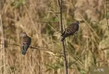 山斑鸠,是鸽形目鸽鸠科斑鸠属鸟类,又名金背斑鸠、棕背斑鸠、山鸠、金背鸠、麒麟斑、麒麟鸠、东方斑鸠、绿斑鸠、山鸽子。山斑鸠颈侧具明显黑白色条纹的块状斑,上体深褐色、具扇贝状斑纹,羽缘棕色,尾羽近黑色,…全部>>