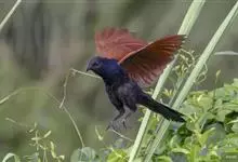 褐翅鸦鹃,是鹃形目鸦鹃科鸦鹃属的鸟类。褐翅鸦鹃的身体为黑色;头颈和胸带蓝紫色金属光泽并具黑亮的羽干纹,下胸至腹部泛金属绿光泽;两翼和肩部为棕栗色,外侧飞羽具暗色羽端,尾羽闪铜绿色光泽;虹膜赤红色,…全部>>