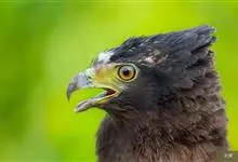 蛇雕是鹰形目鹰科蛇雕属鸟类,又称蛇鹰、白腹蛇雕、冠蛇雕。成鸟额部白色,头顶黑色,枕部黑色带白斑的冠羽可呈扇状打开;上体暗褐色,具窄的白色羽缘;尾黑色,具一条白色的宽中央横带及白色的窄外缘;翼褐色杂白斑,…全部>>