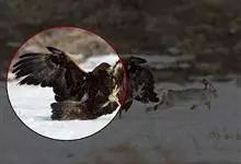 金雕:属于鹰科、雕属的猛禽。体长76-102厘米,翼展达2.3米,体重2-6.5千克。雌雄同色。未成年时,头、颈黄棕色;两翼飞羽除了最外侧三枚外基部均缀有白色,其余身体部分暗褐色;羽尾灰白色,…全部>>
