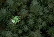 薄雪万年草别名矶小松,景天科景天属多年生草本植物,其细小的蓝绿色棒状叶片环绕生长于茎端,茎匍匐生长接触地面易着生不定根,整片生长郁郁葱葱犹如蓝色地毯,绿化效果极为秀美。原产西班牙,…全部>>