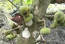 大果榕是桑科榕属的小乔木,株高可达10米;幼枝被柔毛;叶互生,宽卵状心形或近圆形;雄花无梗、匙形、花丝长,雌花生于雌株榕果内,子房白色;榕果簇生于树干基部或老茎短枝上、扁球形或陀螺形,…全部>>