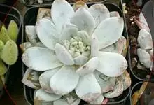 芙蓉雪莲是景天科拟石莲花属的植物。由于叶片表面覆盖着一层厚霜粉,通常呈现出白色;日照增多,温差增大后叶缘、叶尖会呈现出粉红色或橙红色。…全部>>