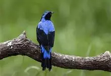 和平鸟中型鸟类,体长24~28厘米。眼红色,嘴、脚黑色。雄鸟从头顶到尾上覆羽等整个上体辉蓝色具紫色光泽,其余体羽黑色。雌鸟通体铜蓝色,仅飞羽黑褐色。常见的低地留鸟,…全部>>
