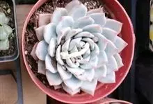 芙蓉雪莲是景天科拟石莲花属的植物。由于叶片表面覆盖着一层厚霜粉,通常呈现出白色;日照增多,温差增大后叶缘、叶尖会呈现出粉红色或橙红色。…全部>>