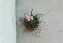 小韭兰学名韭菜莲又名风雨花、菖蒲莲、红玉帘和旱水仙,多年生草本,鳞茎卵球形,基生叶常数枚簇生,线形,扁平,花单生于花茎顶端,下有佛焰苞状总苞,花玫瑰红色或粉红色,蒴果近球形,种子黑色,花期夏秋。韭莲…全部>>