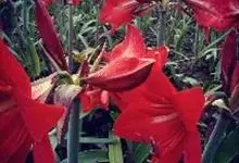 朱顶红 H. E. Moore),石蒜科属多年生草本植物,鳞茎近球形,并有匍匐枝;叶鲜绿色,带形;花茎中空,稍扁,具有白粉,圆筒状,花被裂片长圆形,顶端尖,红色,略带紫色;花丝红色,…全部>>