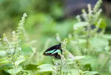 青带凤蝶Graphium sarpedon ,又名青凤蝶,是最普遍的中型凤蝶,飞行速度很快。青带凤蝶的翅膀中央有许多浅蓝色的斑点,很整齐地排列成一条直线。这些斑点由上而下逐渐变大,就像一条青色的带子。全部>>