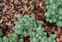 薄雪万年草别名矶小松,景天科景天属多年生草本植物,其细小的蓝绿色棒状叶片环绕生长于茎端,茎匍匐生长接触地面易着生不定根,整片生长郁郁葱葱犹如蓝色地毯,绿化效果极为秀美。原产西班牙,…全部>>