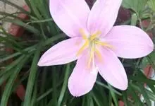 小韭兰学名韭菜莲又名风雨花、菖蒲莲、红玉帘和旱水仙,多年生草本,鳞茎卵球形,基生叶常数枚簇生,线形,扁平,花单生于花茎顶端,下有佛焰苞状总苞,花玫瑰红色或粉红色,蒴果近球形,种子黑色,花期夏秋。韭莲…全部>>
