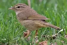 极北柳莺:体长11-13厘米,体小偏灰橄榄色,具明显的黄白色长眉纹,眼先及过眼纹近黑。上体概呈灰橄榄绿色;具甚浅的白色翼斑,大覆羽先端黄白色,形成一道翅上翼斑;中覆羽羽尖成第二道模糊的翼斑;下体白色…全部>>