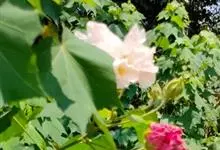 木芙蓉,锦葵科木槿属落叶灌木或小乔木。小枝上有细绒毛;叶片为卵状心形,托叶为披针形,常早落;花单生,花萼为钟形,花冠初为白色或淡红色,后逐渐变为深红色;果实为扁球形,有淡黄色的毛附着。花期8到10月。…全部>>