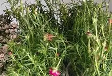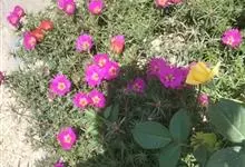 大花马齿苋:一年生草本,高10-30厘米。茎平卧或斜升,紫红色,多分枝,节上丛生毛。叶密集枝端,较下的叶不规则互生,叶片细圆柱形,无毛。花单生或数朵簇生枝端,直径2.5-4厘米,…全部>>