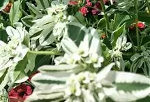 银边翠是大戟科、大戟属一年生草本植物。根纤细,极多分枝;茎基部极多分枝,叶互生,椭圆形,具小尖头,基部平截稍圆,叶缘白色;花序单生苞叶内或数序聚伞状着生,雄花多数,花柱分离;蒴果近球形,种子圆柱状,…全部>>